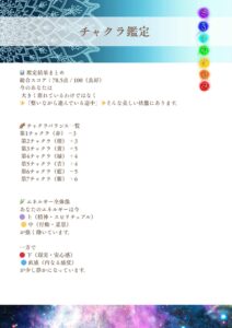 各チャクラのコンディションを数値化し、どのような状態であるかをレポートします。